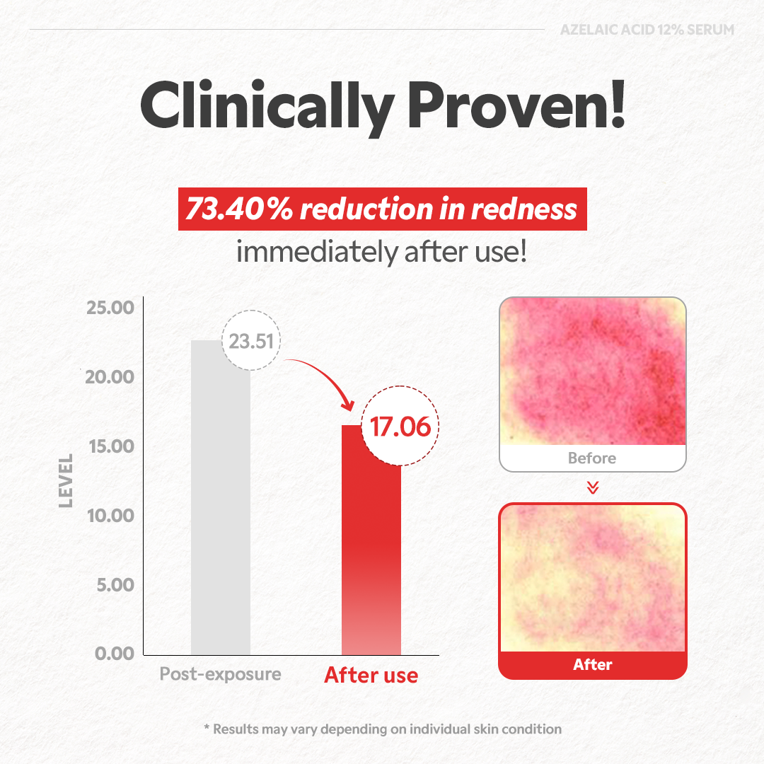 Take control of breakouts, redness, and uneven tone with the TIRTIR Azelaic Acid 12% Serum—a targeted treatment serum powered by 12% Azelaic Acid, Zinc PCA, and Panthenol. Clinically proven to hydrate, calm irritation, and visibly reduce redness, this fast-absorbing serum gently clears and refines acne-prone skin without disrupting the moisture barrier.